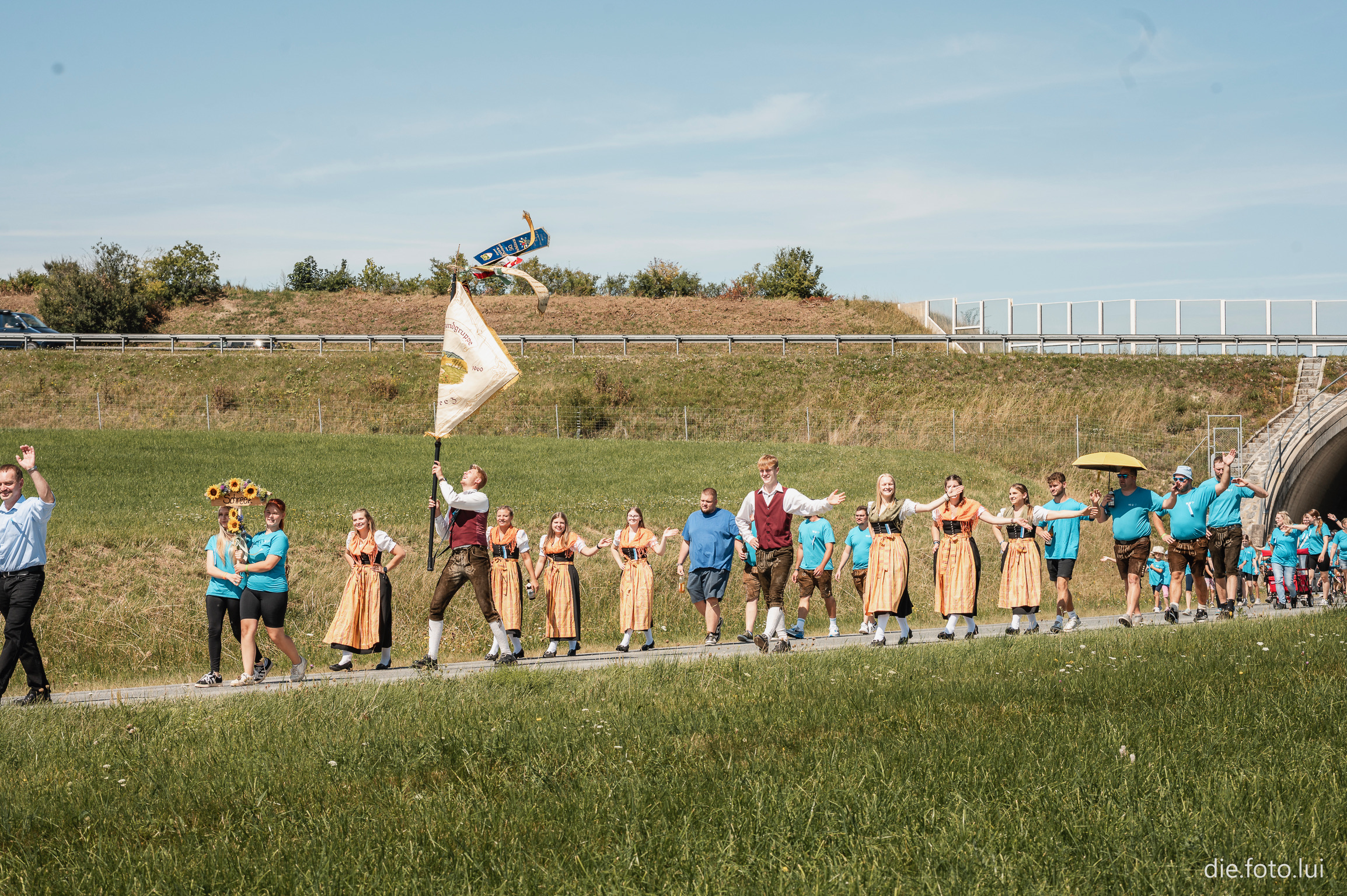 Auch der Sonntag setzte ein besonderes Zeichen der Gemeinschaft: Nach dem traditionellen Zeltgottesdienst, folgten zahlreiche Vereine und Landjugenden aus der Region unserer Einladung und nahmen am großen Festumzug mit anschließendem Fahneneinzug teil.